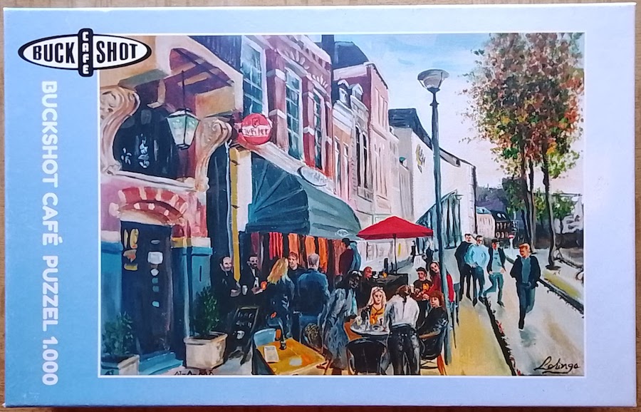 There are exactly 300 units of this puzzle. The Buckshot Café closed during the Covid-19 lockdown, and the owner, who saw Luciën’s painting online, contacted him and requested his authorization to produce the puzzle using his artwork. That way, regular customers could help out the café and perhaps breathe the atmosphere of the café when they were making the puzzle. Luciën even signed some of the puzzle units himself.  (We were told the story of this puzzle by the artist himself!).