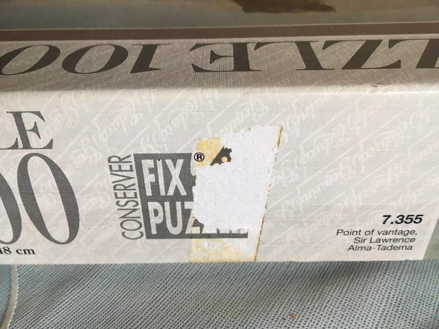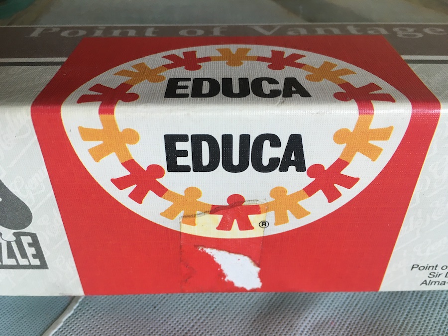 Educa manufactured this puzzle in 1995. The title is A Coign of Vantage, by Sir Lawrence Alma-Tadema, although the title in the box is Point of Vantage.