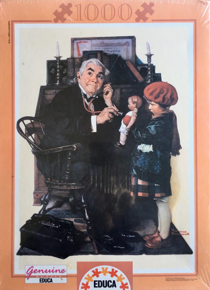 Educa manufactured this puzzle in 1994. The title is Doctor and Doll, by Norman Rockwell.