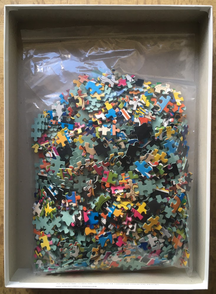 The puzzle is COMPLETE (1000 pieces). The pieces are in excellent condition. The box is in very good condition.