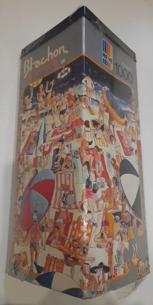 Heye manufactured this puzzle in 1988. The title is Beach 2000, by Roger Blachon. It is very difficult to find now.