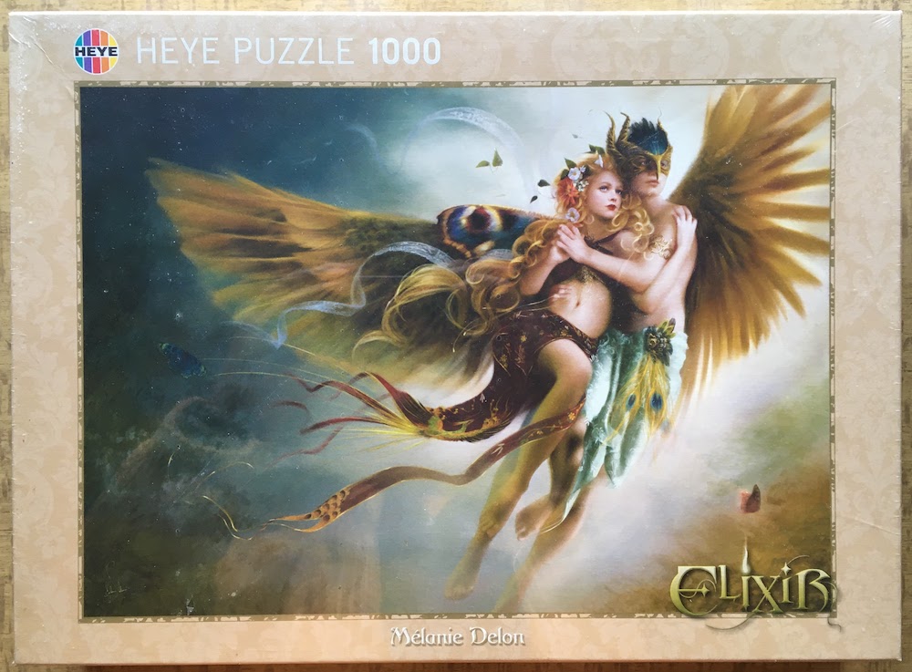 Heye manufactured this beautiful puzzle in 2009, as part of the Elixir series. The title is Flight, by Mélanie Delon.