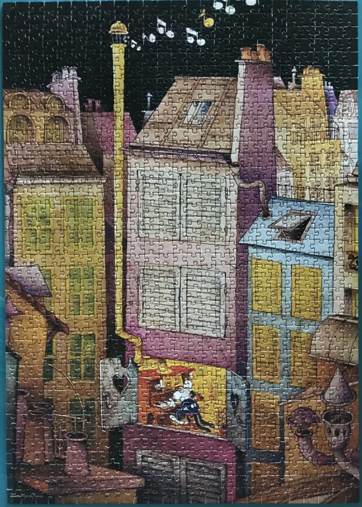 Heye manufactured this very nice puzzle in 2008 as part of the Cartoon Classics series. The title is Piano, by cartoonist Guillermo Mordillo. It is becoming very rare in this size and edition.