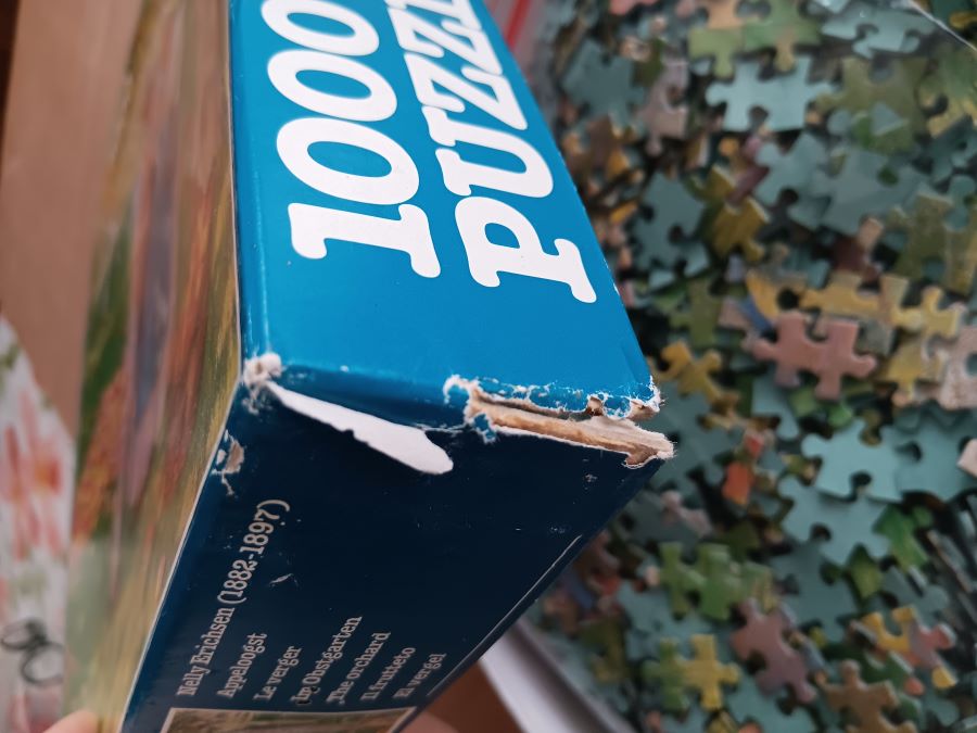 The puzzle is COMPLETE, as you can see in the photographs. The pieces are in excellent condition. The box is in very good condition except for a tear in a corner.