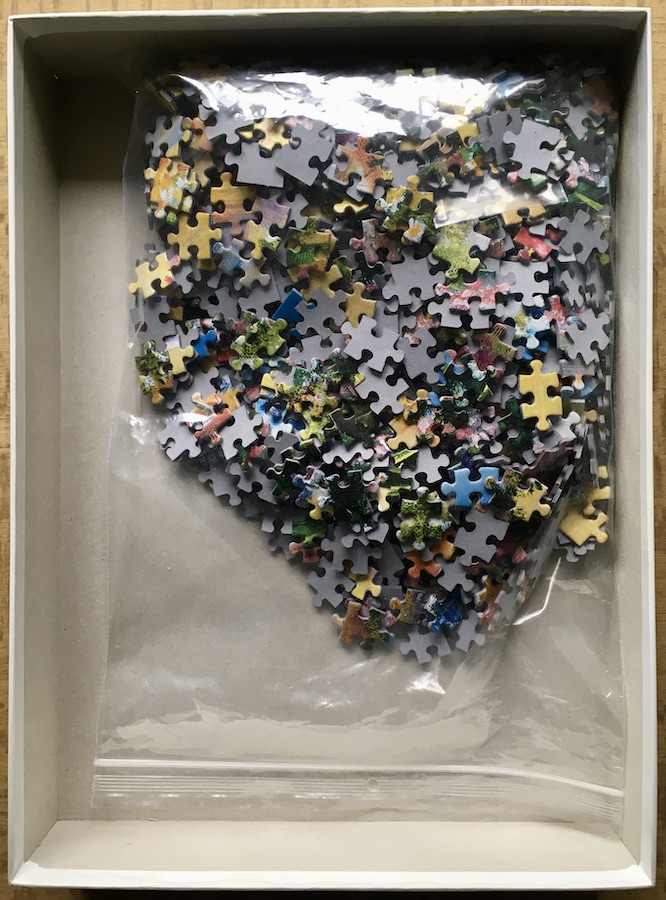 The puzzle is COMPLETE (1000 pieces). The pieces are in excellent condition. The box is in very good condition.