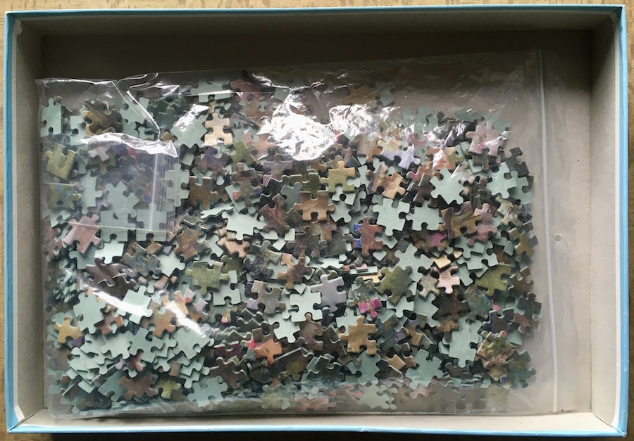 The puzzle is COMPLETE (1008 pieces). The pieces are in excellent condition. The box is in very good condition, with some shelf wear.