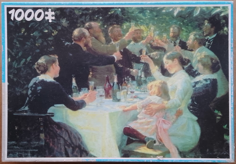 This is a rare puzzle by King. The title is Hip, Hip, Hurrah!, by Peder Severin Krøyer.