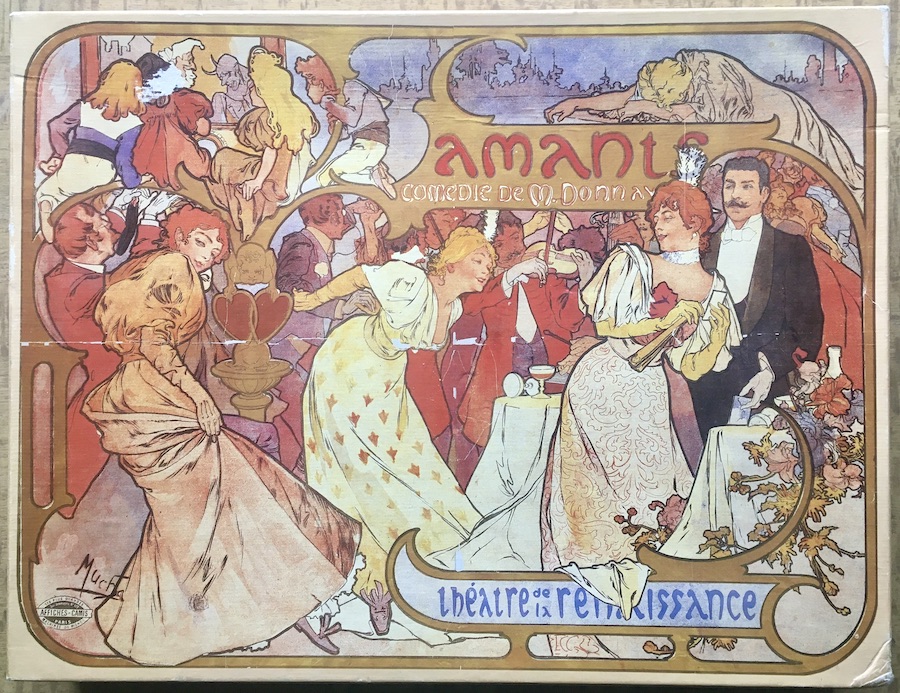MB manufactured this beautiful puzzle in 1980. The title is Amants, by Alphonse Mucha.