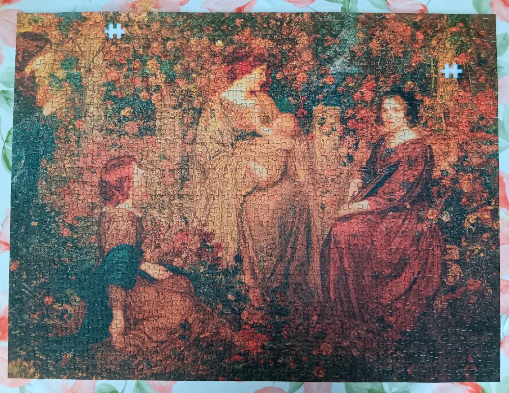 This is an extremely beautiful puzzle by MB. The title is The Child, by Thomas Edwin Mostyn. Although it is not a large puzzle, it is difficult to assemble.