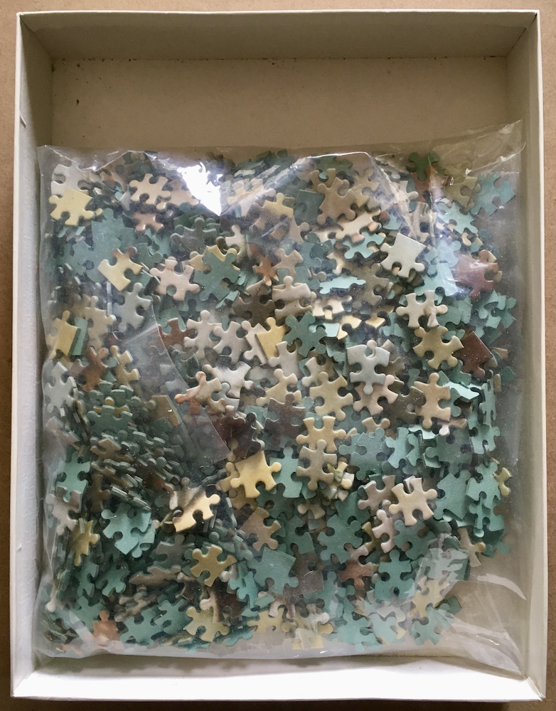 The puzzle is COMPLETE (1008 pieces). The pieces are in excellent condition. One border piece is thinner because it lost a layer. The box is in very good condition, with some shelf wear.