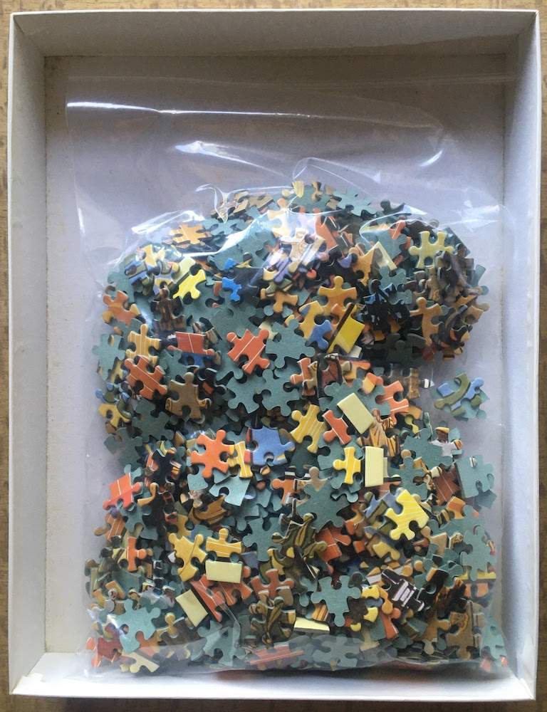 The puzzle is COMPLETE (1008 pieces). The pieces are in excellent condition. The box is in very good condition, with some shelf wear and tape marks on the base.
