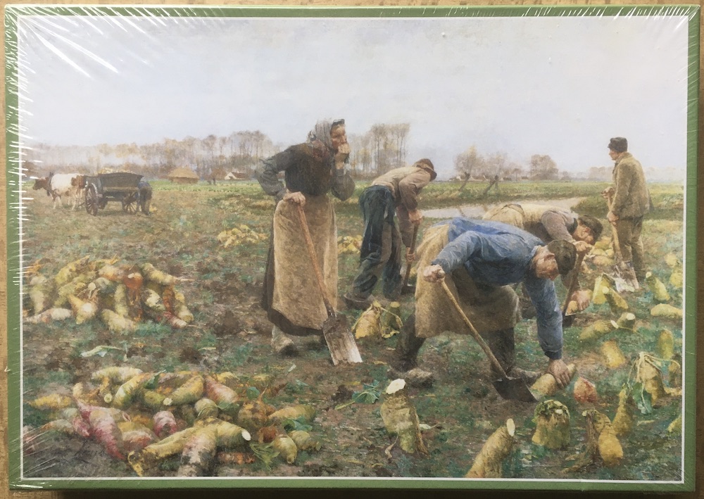 This is a rare puzzle by the Museum van Deinze en de Leiestreek. The title is Beet Harvest, by Emile Claus. You can admire this huge painting (3.3 x 4.8 m) at the Museum van Deinze en de Leiestreek, which was built to house this artwork.