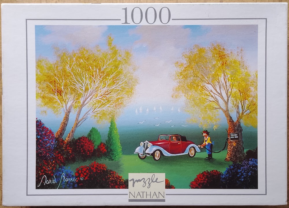 Nathan manufactured this puzzle in 1995, belonging to their Bonnec Brothers collection. The title is Filling Up On The Fantastic, by the Bonnec Brothers, although in this case the signature in the painting belongs to Daniel Bonnec.