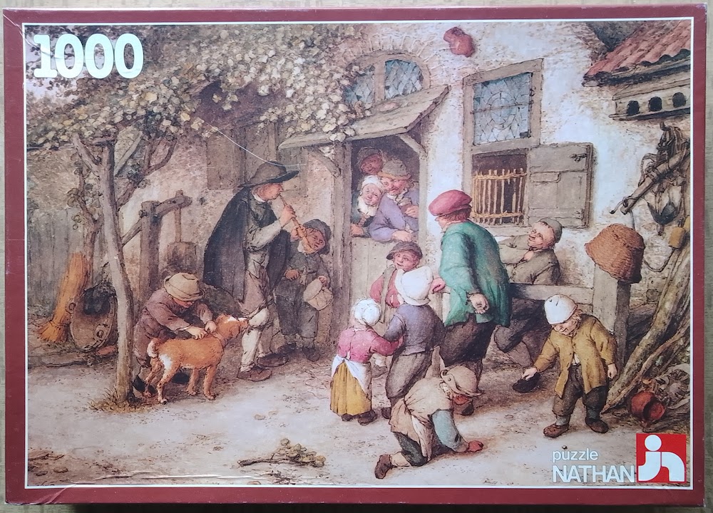 Nathan manufactured this beautiful puzzle in 1985. The title is The Piper, by Adriaen van Ostade.
