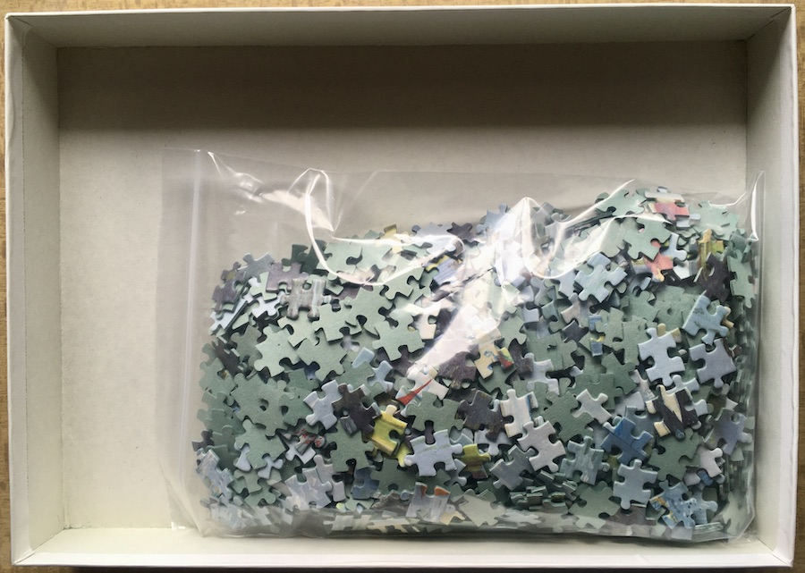 The puzzle is COMPLETE (1008 pieces). The pieces are in excellent condition. The box is in very good condition, with some shelf wear.