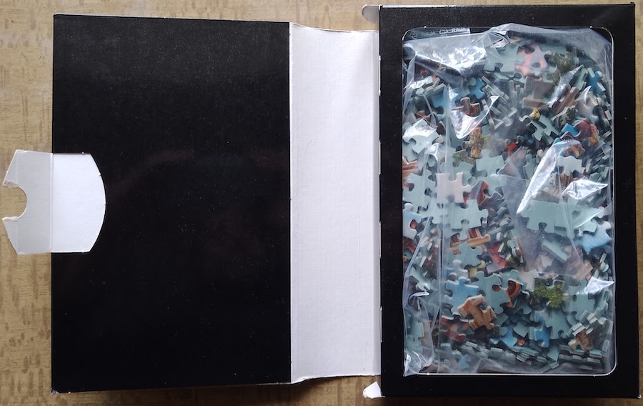 The puzzle is COMPLETE (1000 pieces). The pieces are in very good condition. The poster is in very good condition. The box is in very good condition as well, with some wear.