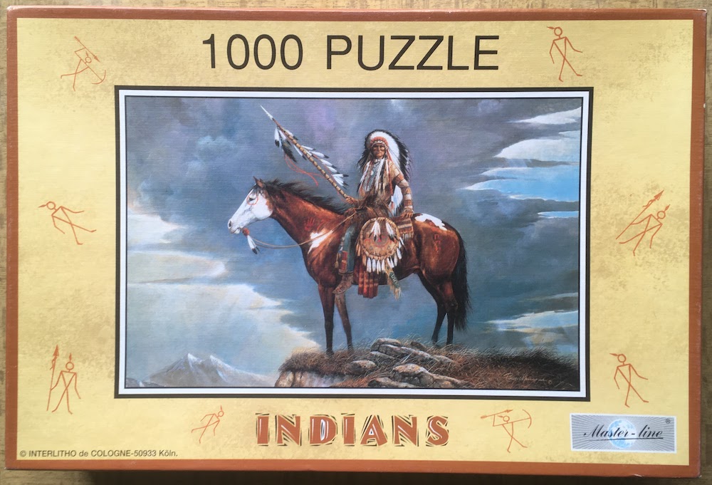 This is a rare puzzle by PTZ. The title on the box is Indians. There is nof reference to the artist on the box, but the artwork has the signature of Ruane Manning.