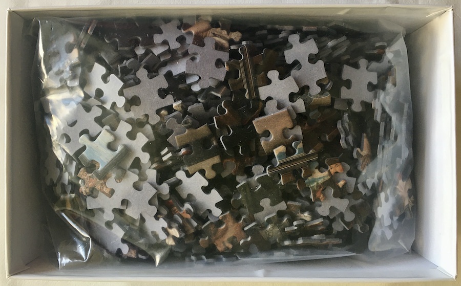 This is a very nice puzzle that Puzzelman manufactured for the Mauritshuis museum. The title is Alexander the Great visiting the Studio of Apelles, by Willem van Haecht.