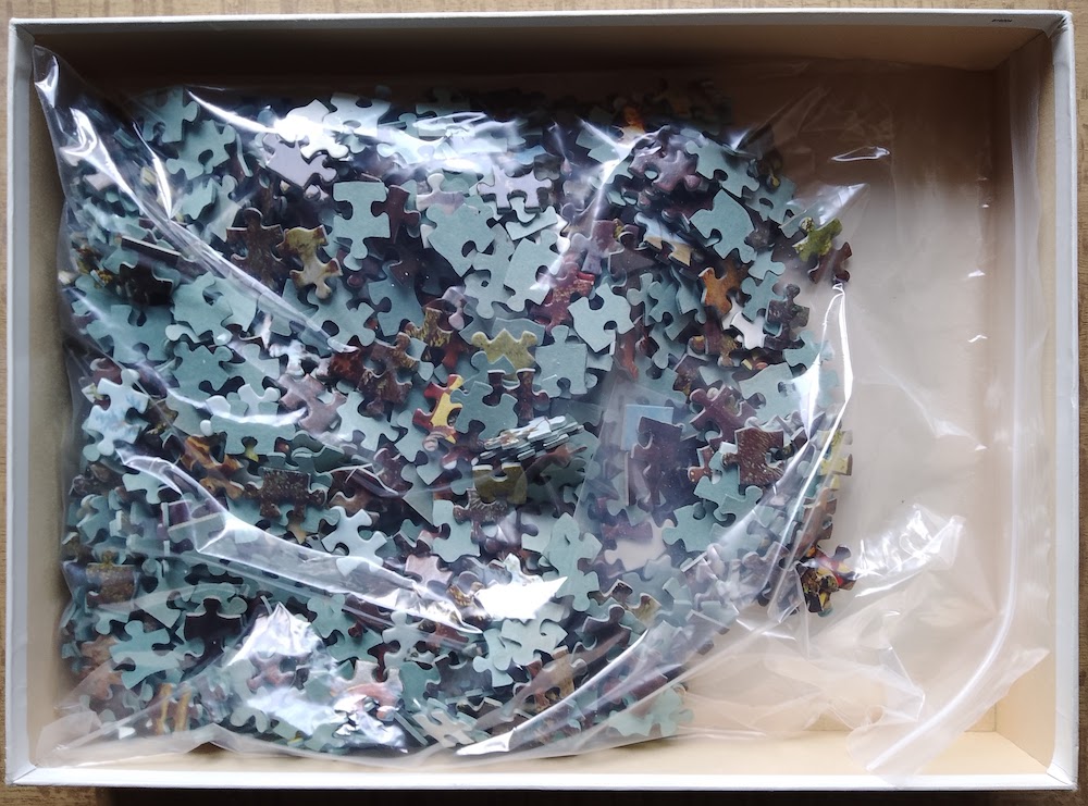 This puzzle is COMPLETE (1008 pieces). The pieces are in excellent condition. The box is in very good condition, with some shelf wear.