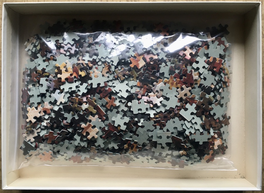 The puzzle is COMPLETE (1008 pieces). The pieces are in excellent condition. The box is in very good condition, with some shelf wear and two small tape tears.