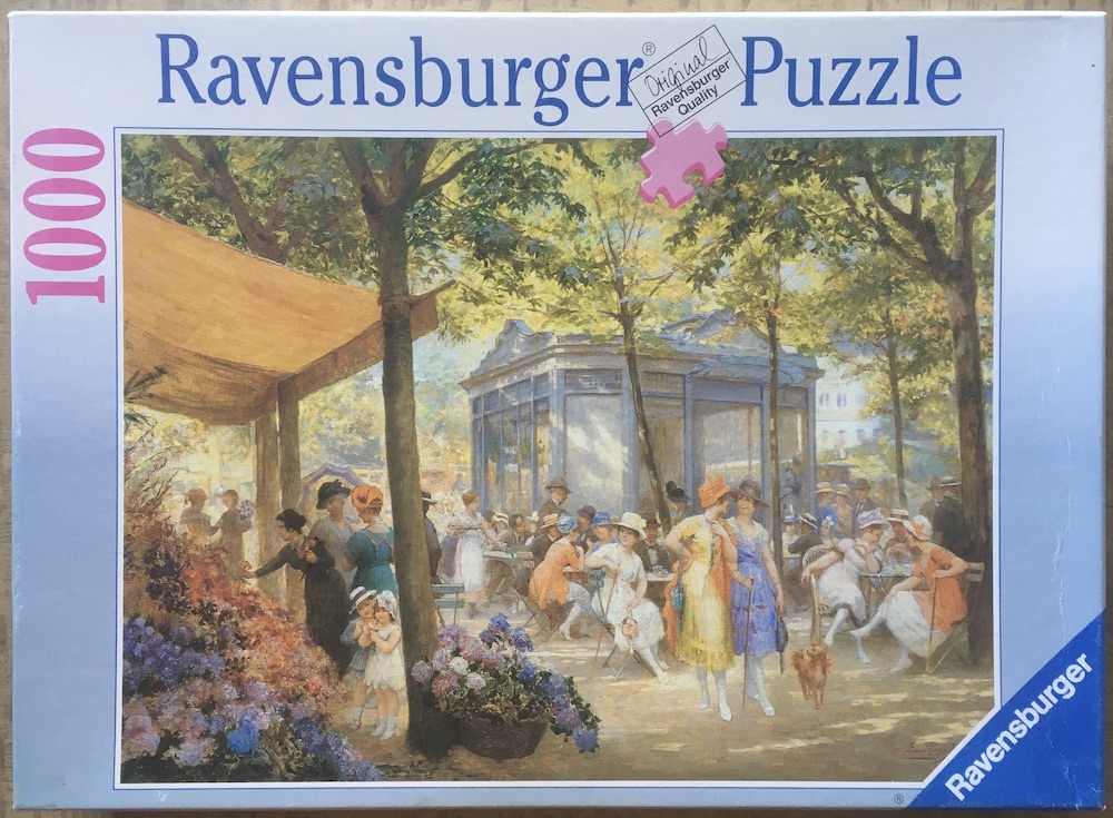 Ravensburger manufactured this extraordinary puzzle in 1995. The title is A Parisian Flower Market, by Eugène Deully. It doesn’t appear very often and it is difficult to find now.