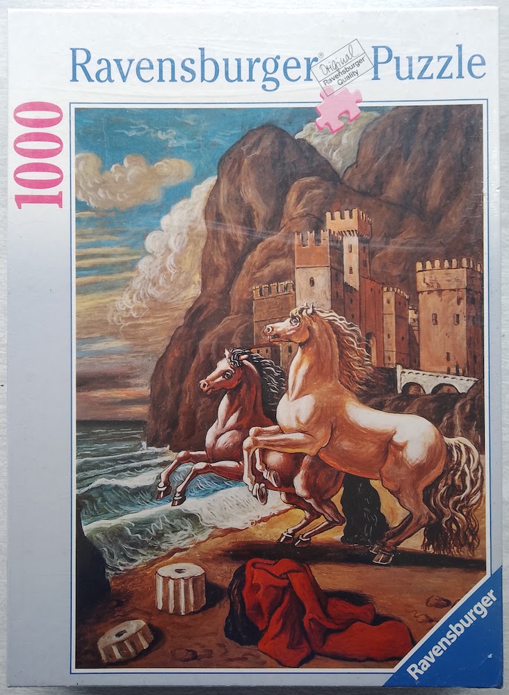 Ravensburger manufactured this puzzle in 2005. The title is Two Horses on a Beach, by Giorgio de Chirico.
