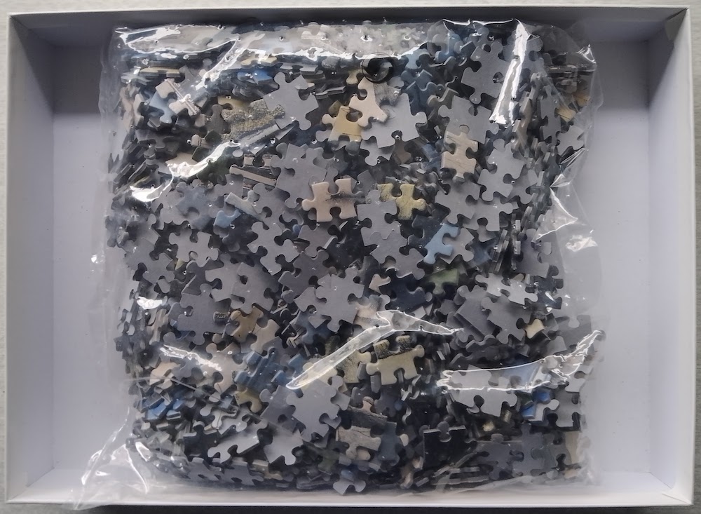 The puzzle is like NEW, with all the pieces SEALED inside the original plastic bag. The box is in very good condition, with some shelf wear.