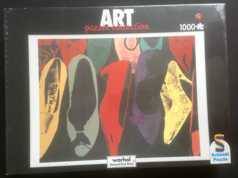 Schmidt manufactured this puzzle as part of their ART Puzzle Collection. The title is Diamond Dust Shoes, by Andy Warhol.