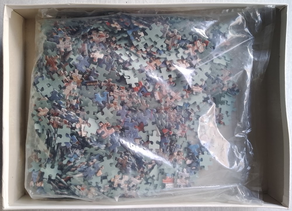 The puzzle is like NEW, with all the pieces SEALED inside the original plastic bag. The box is in very good condition, with some shelf wear.