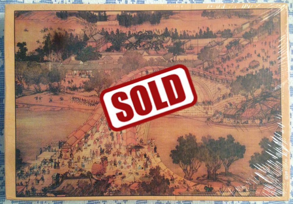 This puzzle represents and amazing piece of art.  The brand name is unknown, since there is no reference in the box. The title is Along the River during the Qingming Festival, attributed to the Song dynasty artist Zhang Zeduan. It is worth reading about this painting here.
