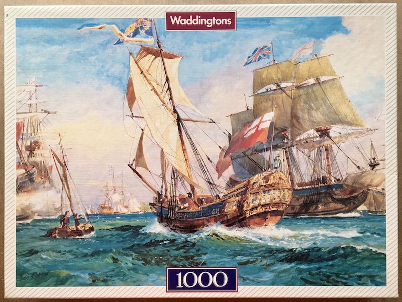 Waddingtons manufactured this puzzle in 1992. The title is Ships on the Line, by Leslie Arthur Wilcox.