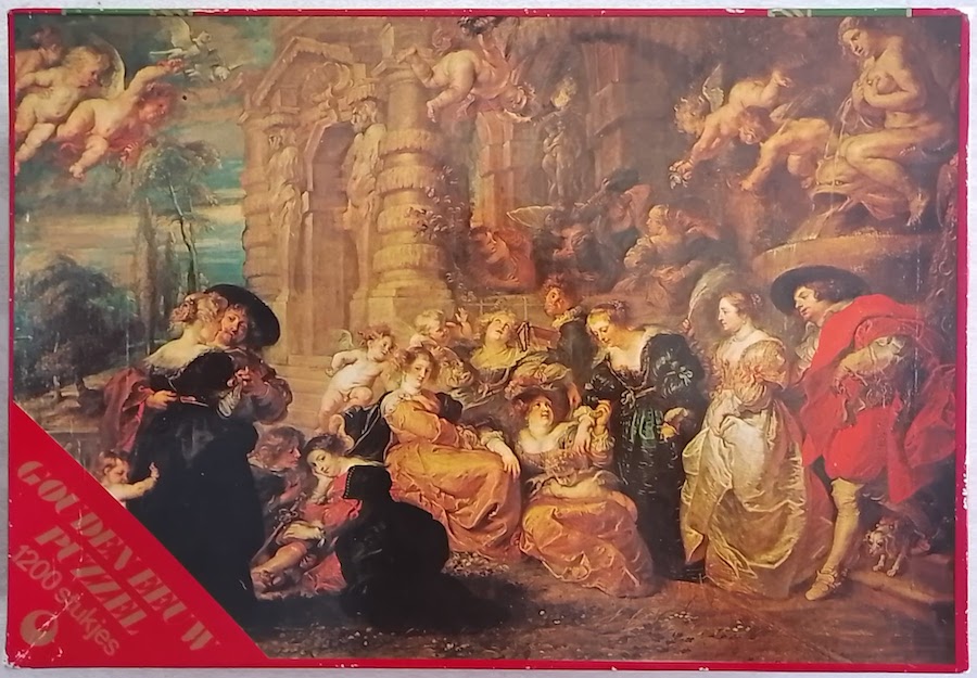 This is a very rare puzzle that Hema produced probably around the 70’s. The title is The Garden of Love, by Peter Paul Rubens. You can admire the original painting at the Museo del Prado, in Madrid.