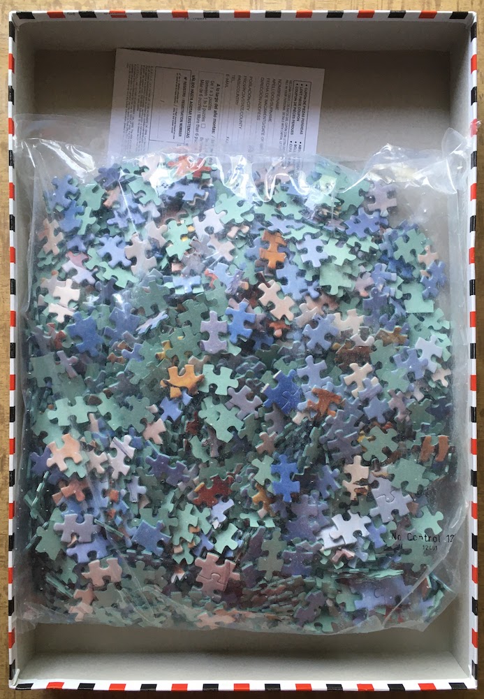 The puzzle is like NEW, with all the pieces SEALED inside the original plastic bag. The box is in good condition, with a tear on a corner, and a small dent on an edge.