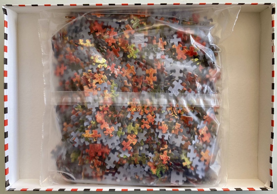 The puzzle is like NEW, with all the pieces SEALED inside the original plastic bag. The box is in very good condition, but it has a depression on the lid and some creases and scuffs on corners, as you can see in the photographs.