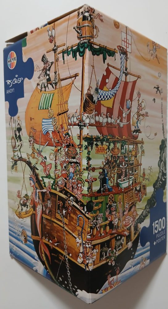 Heye manufactured this puzzle in 2007. The title is Ahoy!, by the cartoonist Robert J. Crisp.