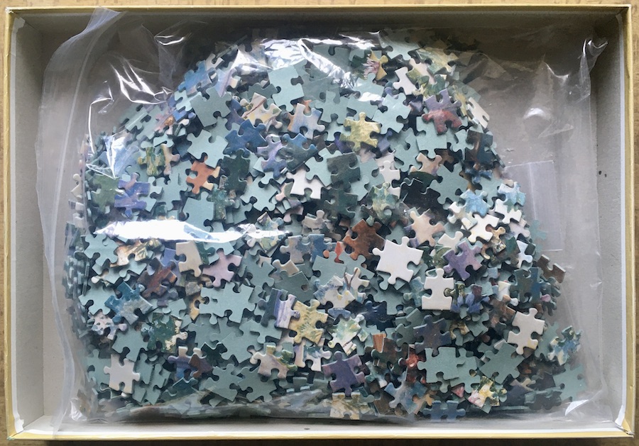 The puzzle is COMPLETE (1500 pieces). The pieces are in excellent condition. The box is in very good condition, with a tear on a corner of the base and several tape tears on the base.
