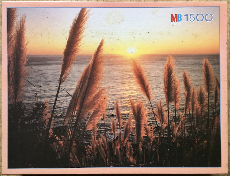 MB manufactured this puzzle in 1988, as part of their Nature collection. The title is Coucher de Soleil, or Sunset, with a photograph by David Muench.