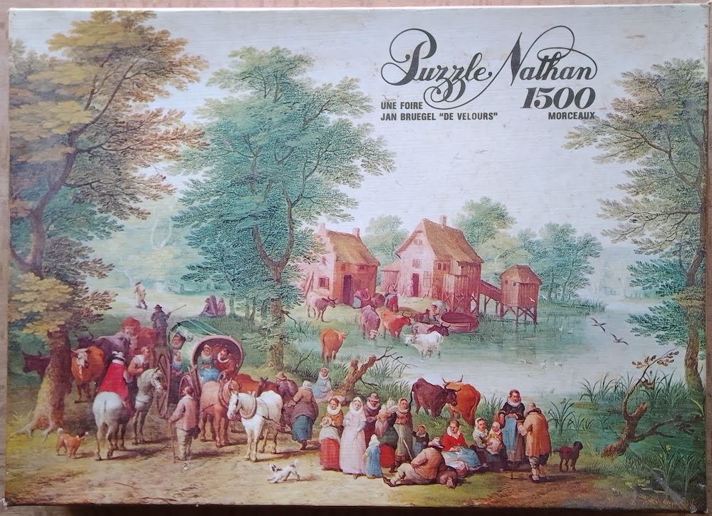 Nathan manufactured this puzzle in 1975. The title is A Fair, by Jan Brueghel the Elder.