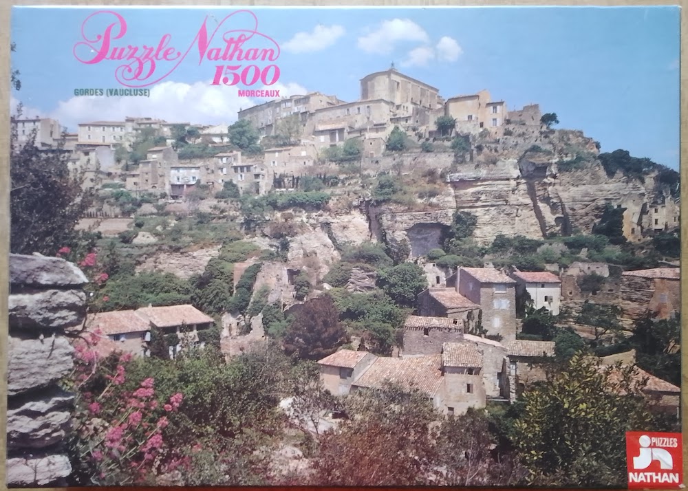 Nathan manufactured this puzzle in 1977, as part of their Horizon series. The title is Gordes (Vauclause).