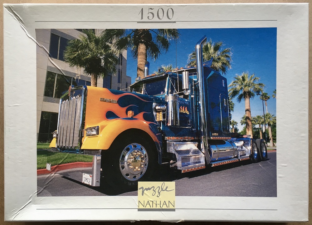 Nathan manufactured this interesting puzzle in 1996 as part of their Prestige collection. The title is Kenworth W 900, with a photograph by Francis Reyes.