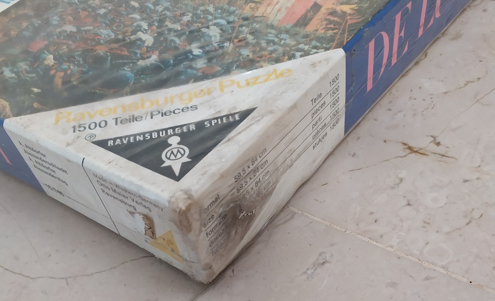 The puzzle is NEW, with its original FACTORY SEAL. There are some tears in the seal and some dirt in the box, as you can see in the photographs.