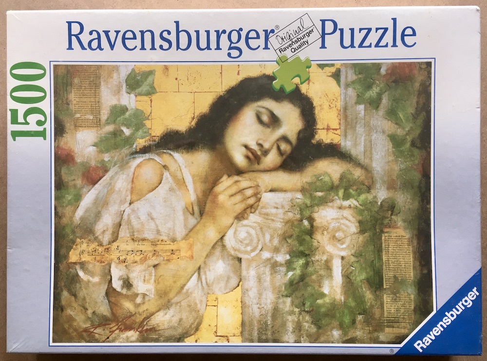 Ravensburger manufactured this beautiful puzzle in 1999. The title is Love’s Dream, by Richard Franklin.