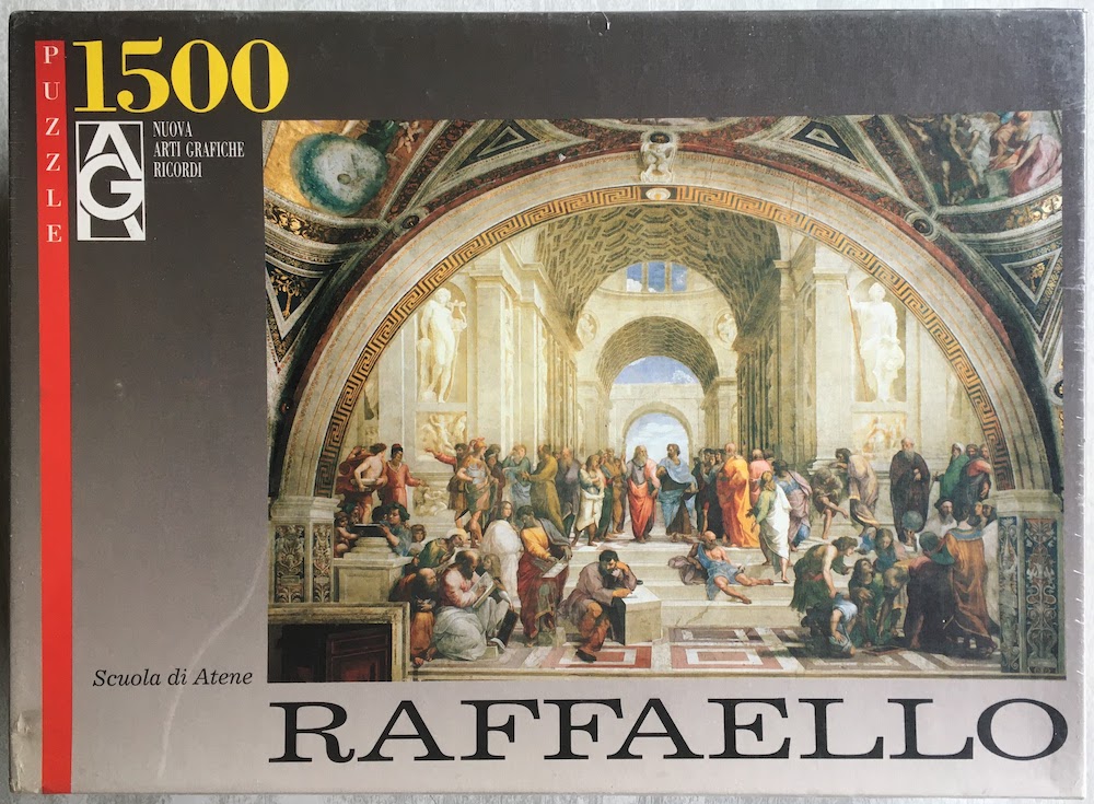 Ricordi manufactured this puzzle in 1997. The title is The School of Athens, by Raphael.
