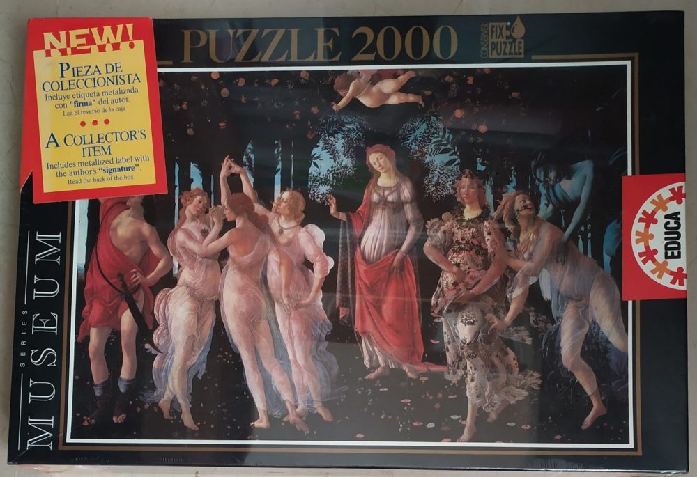 Educa manufactured this puzzle in 1996, and there is an earlier version from 1991 in a red box. The Allegory of Spring is one of the most important works by the Italian Renaissance painter Sandro Botticelli.