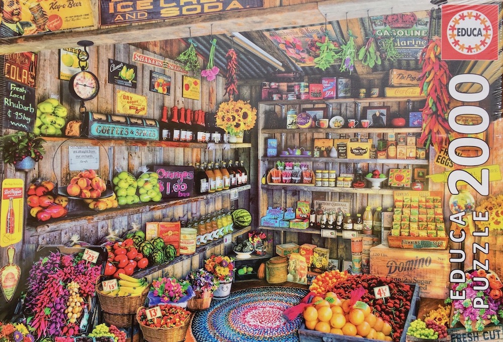 Educa manufactured this puzzle in 2017. The title is The Farmers Market, by Aimee Stewart.