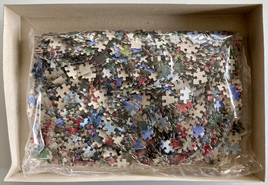 The puzzle is like NEW, with all the pieces SEALED inside the original plastic bag. The box is in very good condition, except for some creases on corners and some tape remnants.