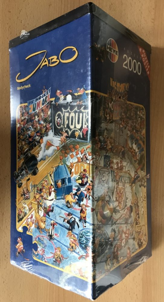 Heye manufactured this old and rare puzzle in 1996. The title is Bodycheck, by German cartoonist Jan Birck, who signs as Jabo. The puzzle is now very difficult to find in this condition.