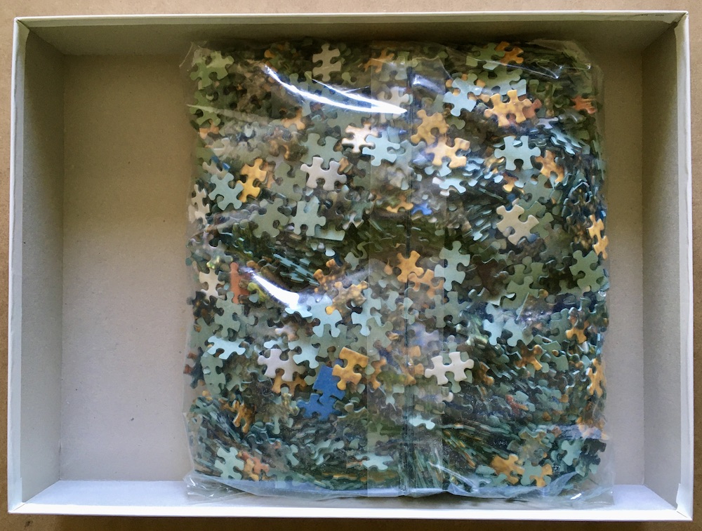 The puzzle is like NEW, with all the pieces SEALED inside the original plastic bag. The box is in very good condition, with some shelf wear.