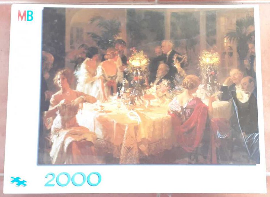 MB manufactured this interesting puzzle in 1994. The title is The Dinner Party, by Jules-Alesandre Grün. It is a very rare puzzle.