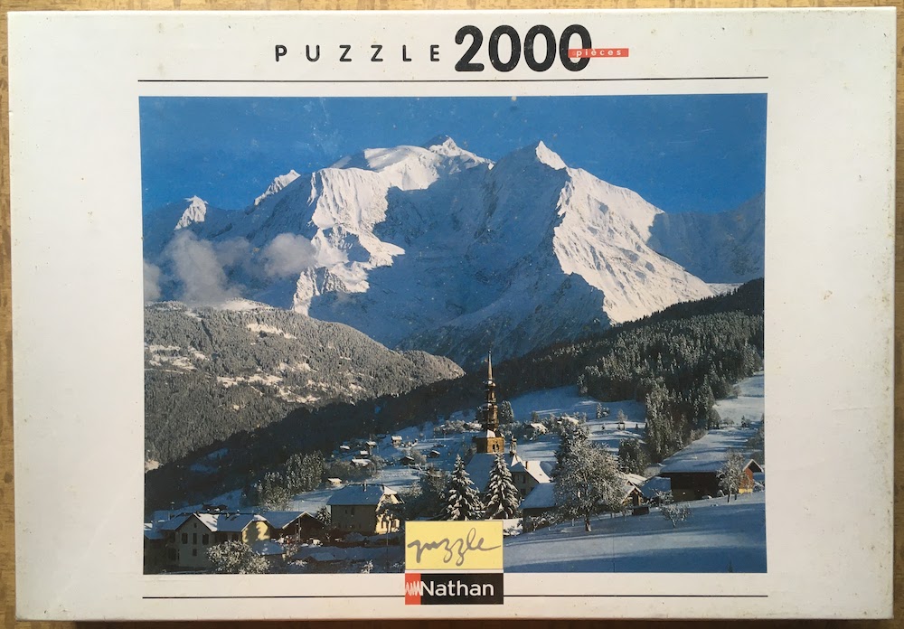 This is a very nice puzzle by Nathan. The title is Vue du Mont Blanc/Combloux, with a photograph by Gilles Lansard.